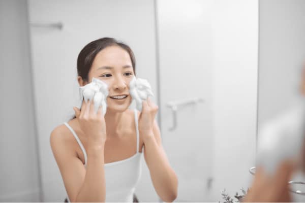 การล้างหน้าให้สะอาดเป็นสิ่งสำคัญมากในการดูแลผิว โดยเฉพาะในช่วงที่มีประจำเดือนที่ผิวของเราจะมันและเป็นสิวง่ายขึ้น ควรล้างหน้าด้วยโฟมล้างหน้าที่อ่อนโยนต่อผิว วันละ 2 ครั้ง เช้าและเย็น